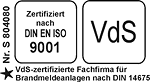 • zertifiziert nach DIN 14675, Brandmeldeanlagen seit 07.12.2004